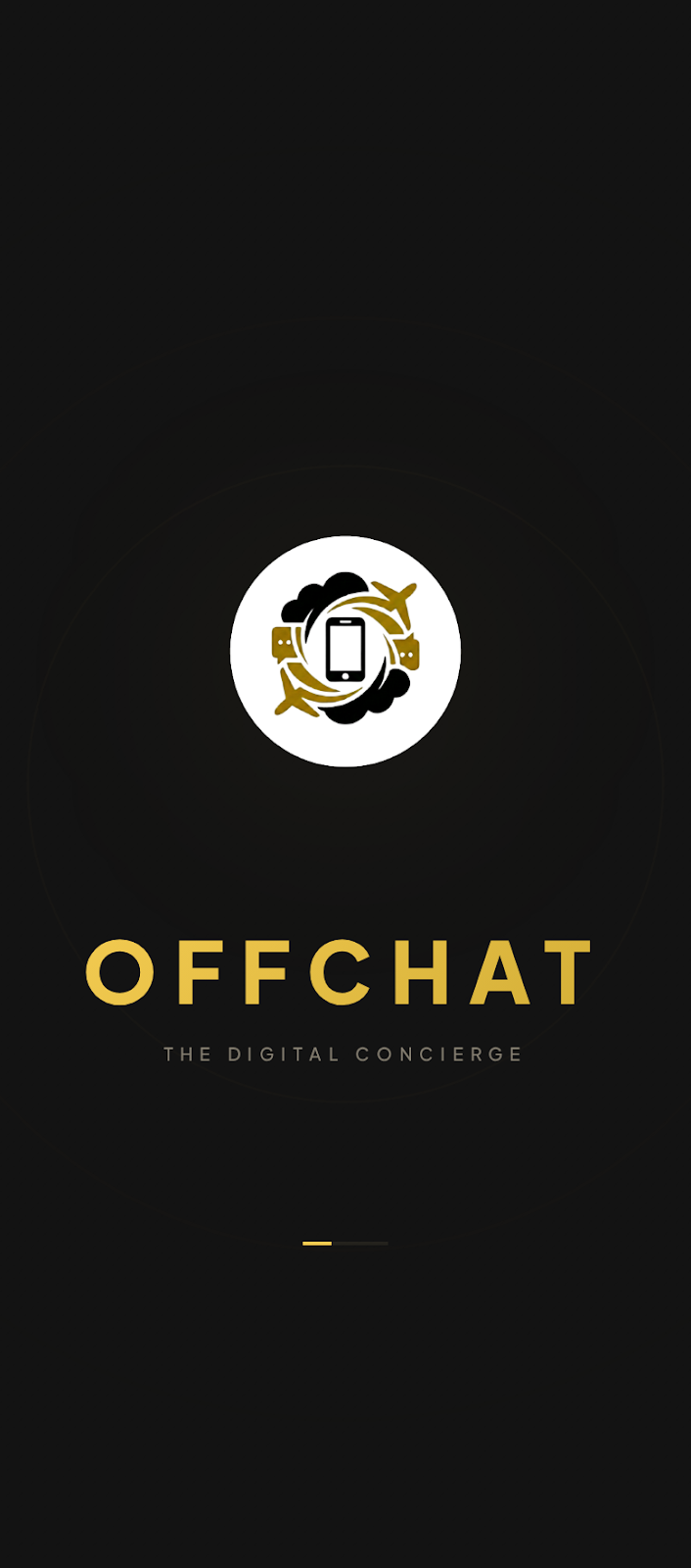 Users are greeted by the minimalist splash screen, establishing the high-end digital concierge aesthetic immediately.